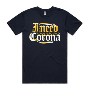 I NEED CORONA - MEN`S BLACK T-SHIRT - FRONT PRINT