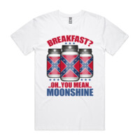 OH YOU MEAN MOONSHINE - BREAKFAST - MEN`S WHITE T-SHIRT - FRONT PRINT