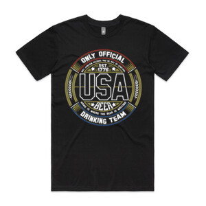 USA BEER DRINKING TEAM - STARS AND STRIPES - MEN`S NAVY T-SHIRT - FRONT PRINT